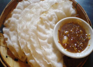 Banh dap is actually a combination of two kinds of rice papers, one white, thin and kind of sticky and the other, dry, crispy and brittle.